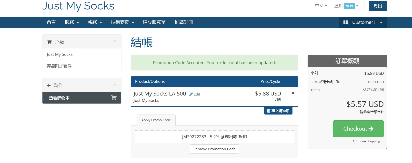 Just My Socks 支持多种支付方式: