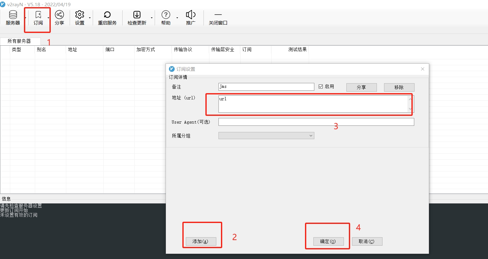 v2rayN 软件添加订阅的具体步骤: